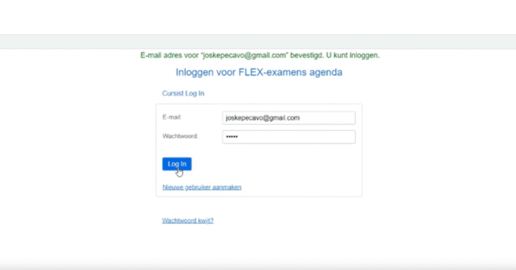 Log in op de website Voltooid 60% Als je op de link in de mail hebt geklikt kom je rechtsstreek op de log-in pagina terecht. Hier vul je het e-mail adres en het wachtwoord in dat je eerder hebt opgegeven.Als je al een log-in hebt, dien je pas bij deze stap in te pikken. Vorige Volgende Uitleg via een filmpje Schrijf je hier in voor je module-evaluatie (uitleg overslaan)