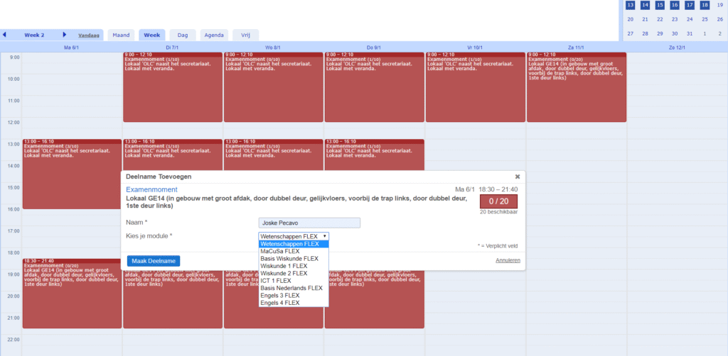 Welke module-evaluatie wil je maken? Voltooid 80% Als je op een module-evaluatiemoment klikt, dien je jouw volledige naam in te vullen. Je duidt ook de module aan waarvoor je de evaluatie wilt maken. Vorige Volgende Uitleg via een filmpje Schrijf je hier in voor je module-evaluatie (uitleg overslaan)