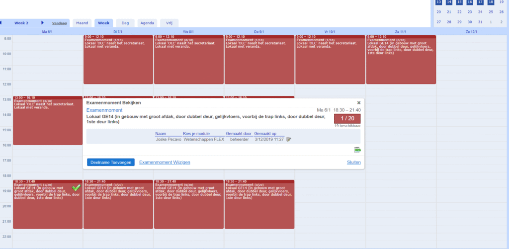 Deelname bekijken Voltooid 90% Je kan je inschrijving terug raadplegen als je op een moment klikt waar je eerder jezelf hebt ingeschreven. Vorige Volgende Uitleg via een filmpje Schrijf je hier in voor je module-evaluatie (uitleg overslaan)
